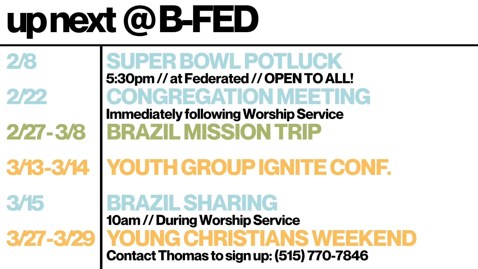 Want to stay in the loop with upcoming events and announcements from Federated Church? Click below to subscribe.